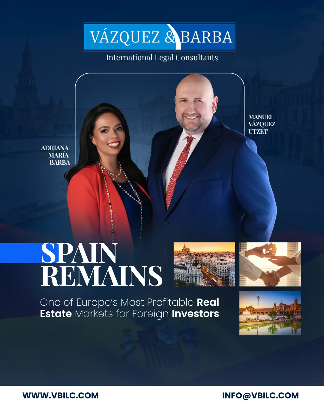 The leadership of Manuel Vázquez Utzet and Adriana María Barba, has made Vázquez & Barba a reference in real estate, business, international tax and corporate immigration law in Spain.